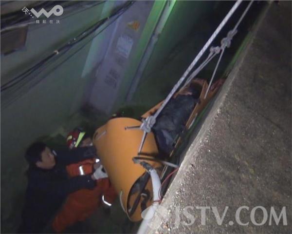 在两栋民房之间,有个狭窄夹墙,夹墙深约4米,两头被砖块堵死。一名男子坐在墙底不停呻吟,他的朋友站在身旁,一边安慰一边扶着他。消防队员携带救援器材沿梯子下到夹缝底部,铺好担架后,朋友和消防官兵合力把他挪到担架上,绑好固定绳索后上方人员合力把伤者拉上平台。由于进出平台的楼梯过窄,担架无法通过,救援人员只好再次整理绳索,将伤者抬到平台另一侧,然后成功将他解救出来。