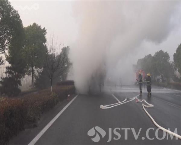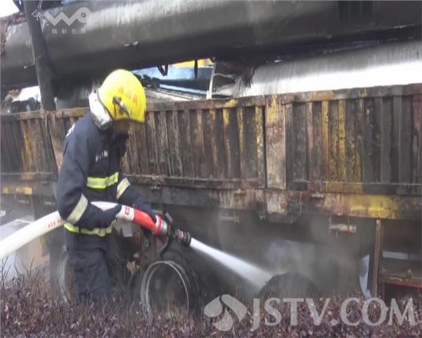 12月21日上午7点30分左右,G328国道扬州市江都区宜陵段,一辆装载钢管的半挂货车突然爆胎起火,司机及时分离了车头与车身,保全了车头。