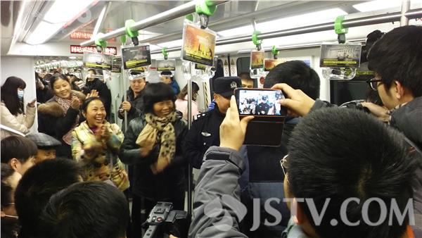今天(12月22日)上午,南京地铁防诈骗宣传列车投入运行,车上有许多宣传防范通讯诈骗的元素。如提醒市民捂紧钱包,不要汇款等。一位民警还来到车厢,打起了快板,宣传相关知识,这种文艺形式的防诈骗宣传还是头一次看到,朗朗上口的快板内容让大家更加容易记忆和理解,受到市民的欢迎,不少人还拿出手机拍摄视频。