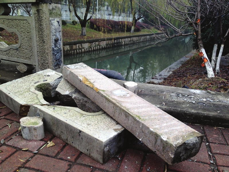 记者看到,被撞飞的桥栏有整整两截,桥栏外驳岸上的绿化中,一棵直径近20厘米的树木被连根撞起,从树根往上直至近一人高处的树干上,遍布被轿车刮出的伤痕。“飞出去老远,差不多要到河对面,前面的车胎也爆了。”目击者雷女士说,上午她经过桥边时,看到警方正组织吊车对河中的轿车进行起吊,她看到车上没有人员,不过车体损毁严重。通过她所拍的照片记者看到,肇事的是一辆车牌为“苏J”的白色轿车,起吊时车前引擎盖向后掀起,后备箱盖也开着。