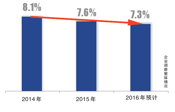 数据显示,今年企业平均调薪幅度为7.6%,较去年下降0.5个百分点,预计2016年,将继续降至7.3%。