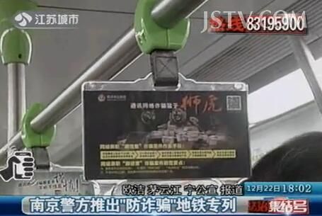 “防通讯网络诈骗”地铁专列由南京市公安局联合地铁公司共同推出,在三号线运营,全车340个拉手、42个车厢看板、114个椅侧、68个车窗上,都张贴了防网络通讯诈骗的宣传画,这些宣传画向市民们一一揭露了不法人员的作案手段并讲解了防范要点。 地铁警方还创作了幽默风趣的“防骗快板”,民警们在车厢里边走边说,提高市民的防范意识。 记者了解到,“防通讯网络诈骗”地铁专列,预计在半年时间内,可以对6000万人次进行防诈骗宣传。
