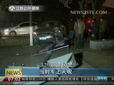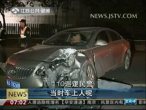 昨晚9点半左右,南京市建邺区110巡逻民警,在巡逻到云锦路上时,发现一辆别克轿车撞断左侧路灯后,停在路边。车头损毁严重,车内气囊弹出。附近只有两名自称是乘客的男子,但司机却不见踪影。