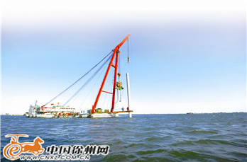 12月16日,在取水管线施工现场,记者看到,施工的船舶正在往水下打桩,并有潜水员在水下焊接。该项目负责人吴立飞说,正在建设的取水头,设计能力是每天可以取水140万吨,目前取水头打桩已经全部完成,正在进行水下的管线安装。在沿线沉管位置,总共设计有83根桩,入土深度达到25至26米左右,现在总共施工了56根。预计12月底,可以进行第一根管子的沉管,然后全线展开,沉管完成以后,就可以直接和顶管连接起来,形成一个整体,达到取水的效果。