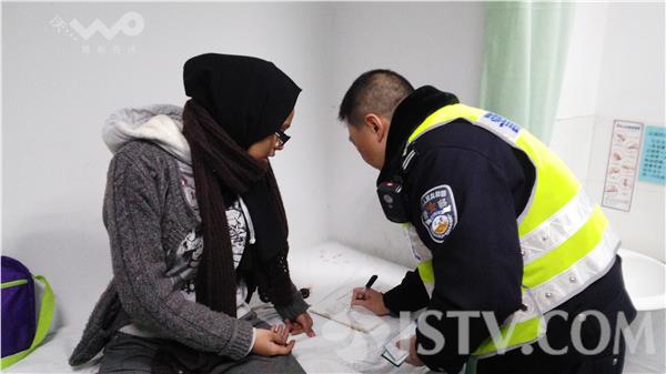 南京交警一大队事故民警任警官接警后立即赶赴现场。当时事故造成这名来自巴林的女留学生腰和腿受伤,这名女留学生不会说汉语,说的英语也明显带有阿拉伯口音。任警官看口语难以沟通,立即拿来纸和笔用英语进行沟通。任警官了解到该留学生是东南大学医学院的一名研究生,来中国时间不长,目前仅能够听懂一些简单的汉语。在简单的沟通下,任警官用警车将女留学生带往最近的市级机关医院进行诊疗。
