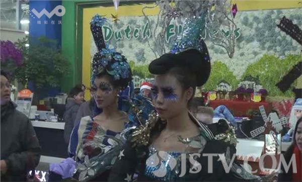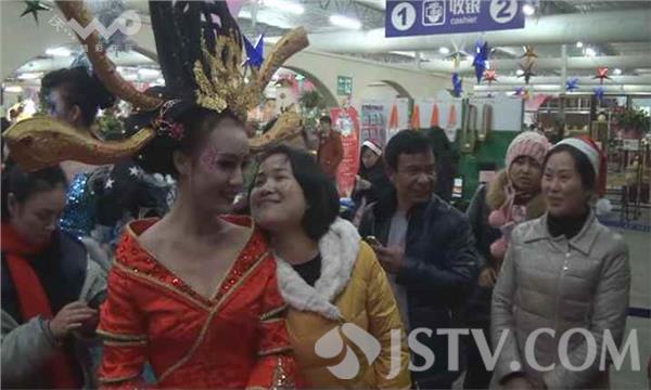在活动的主广场上,摆放了一棵高达十多米的圣诞树,吸引了不少市民前来合影留念,主办方还准备了不少精彩的文艺表演,不少广场舞大妈们随着欢快的音乐节奏,也忍不住跳起了广场舞,来自盐城东方色蕴彩妆学校的模特学生们,她们奇异的装束更是吸引了众多的市民,纷纷拿起手中的手机,争相与这些美丽漂亮的模特合影。