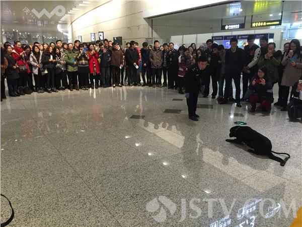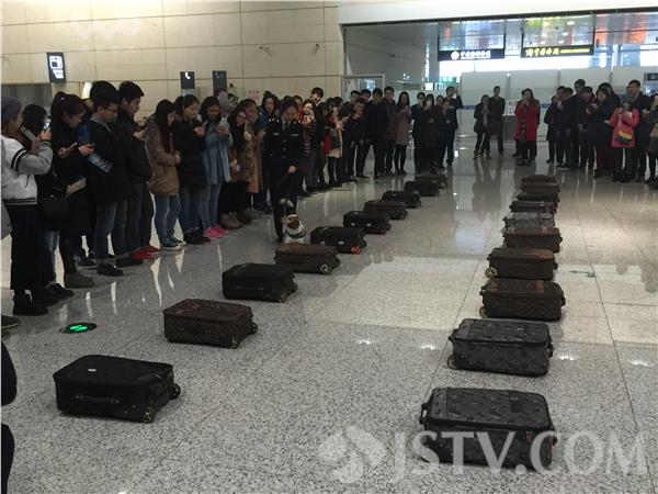 三江学院150余名师生现场观摩了检疫犬的工作。