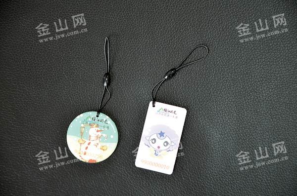 记者先睹为快,初次发行的异型公交IC卡分为长方形与圆形两种,长方形的两面均为一个卡通小女孩,圆形的一面为圣诞树,一面为雪人。异型公交IC卡上方均有吊带,可像挂件一样挂在手机上,可爱、时尚(见图 许江军 摄)。