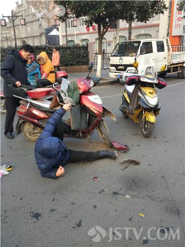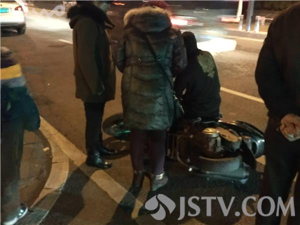 昨晚(12月29日)17:45分左右,笔者经过南京河西时,在南京云锦路和福园街交叉路口,就见到一辆电动车倒伏在地,车主瘫坐在地,正惊魂未定,据悉,当时车主正欲拐弯,不料突遭赶来的一辆白色轿车“挤压”后瞬即倒地,事故中电动车车虽未受伤,但却早已被吓出一身冷汗,据悉,当时电动车拐弯并未注意观察,事后白色轿车车主下来查看,双方现场作协商处理。