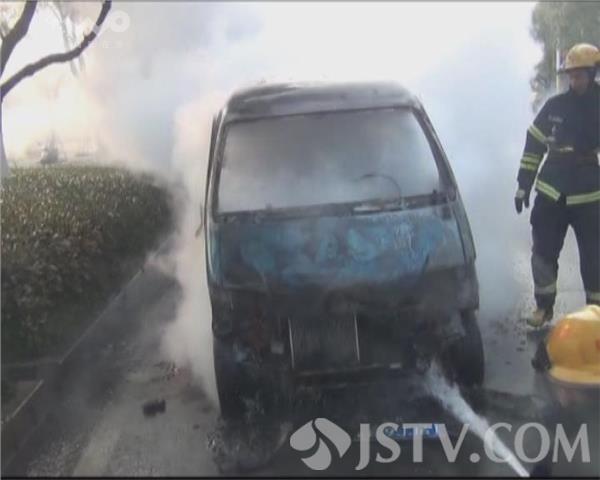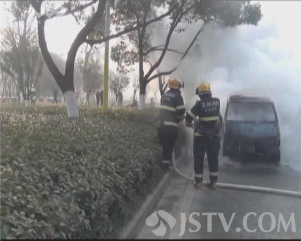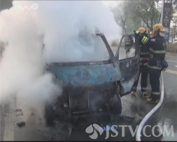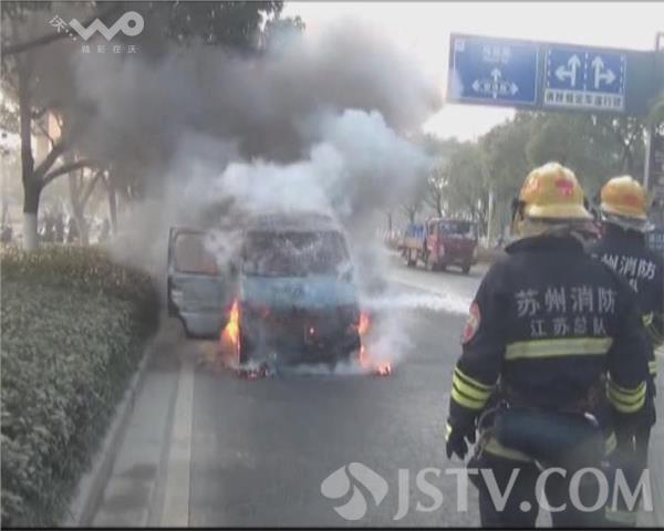 12月31日13点左右,苏州312国道南侧金庄银珠路一辆面包车突然爆燃,烈火窜出好高。目击者介绍,车上都是危险品。警方紧急封闭车道,救援人员火速赶到,架设水枪灭火。由于车内不少油,为了防止伤人,救援人员非常小心,反复扑救,十多分钟后扑灭了大火。据了解,驾驶员驾车运输了很多易燃品,有乙炔和油料,结果突然烧了起来。警方提醒,面包车这样人货混装是违法的,车辆不稳容易燃烧起火,非常危险。尤其装载这么多易燃品,驾驶员就更加不该了,也非常危险。