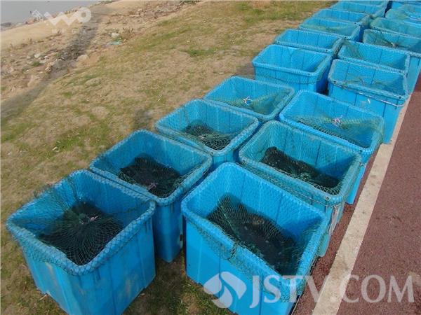 市民租船放生四十桶黑鱼 引来成群江豚争抢觅食