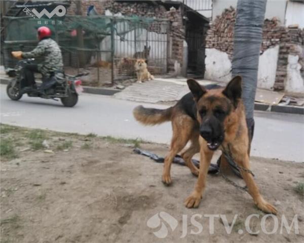 现场看到就在路对面有一个不锈钢笼子里还养着五条烈性犬,其中还有多条松狮犬。见到有路人经过这条狼狗总是窜出想咬人,幸好被主人是用铁链锁住。
