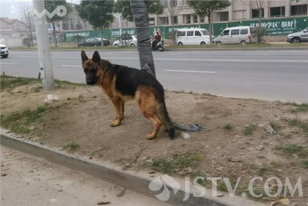 绿化带原本是供于美化城市的,1月4日上午11时,淮安市清河区漕运西路上有一条狼狗被栓在绿化带内,好端端的绿化带成为狼狗休息的地方。