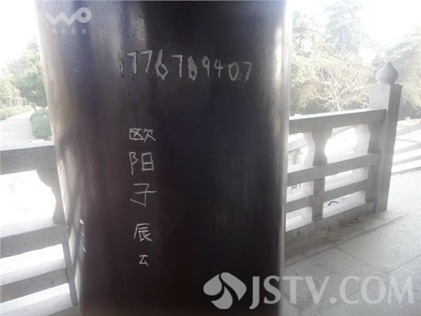 1月4日下午,荔枝新闻通讯员前往浦口区珠江镇,在凤凰山公园登临凤凰阁时发现:凤凰阁受涂鸦严重,仅底基座的石基座和底层的28根立柱上竟遭100多处刻划涂鸦。