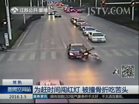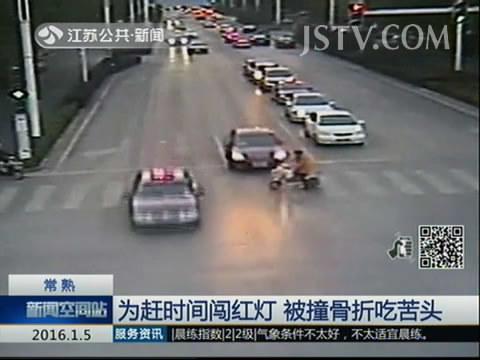 近日在苏州常熟发生了惊险一幕。一辆直行轿车在路口将一辆电瓶车撞飞,驾驶员被撞伤,而车祸的原因就是电瓶车驾驶员心急闯红灯。