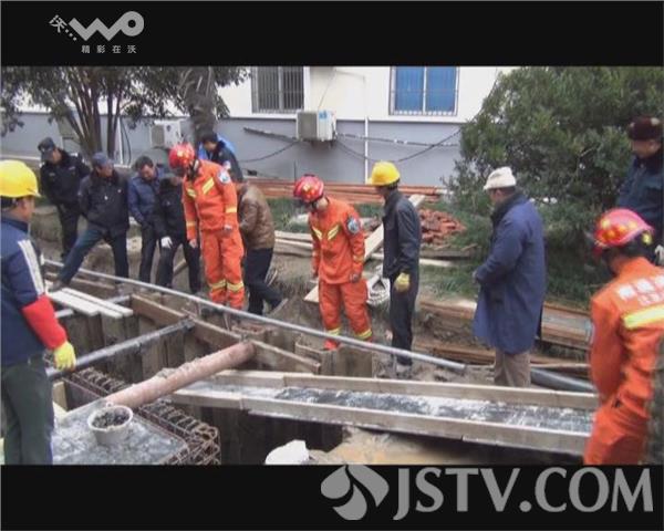 荔枝新闻记者赶到现场时,看到中医院后正在修建地下水库,挖了一个深6至7米的坑,一只大狼狗正在深坑内的一侧瑟瑟发抖,消防队员先找来一个足够长的踏板,想让狗顺着踏板上来,当时大狗并不配合,一个劲的往后退,中途还尝试着让人下去,给狗打上套锁,把狗拉上来,都没有成功。最后众人将踏板放入坑内,将狗赶至踏板上,将狗连同踏板一起抬了上来。