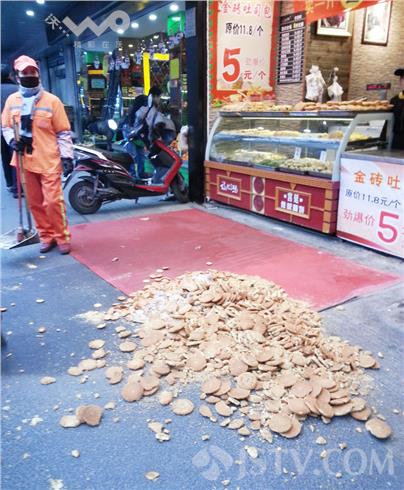 今天(1月7日),在南京珠江路一家名为“诗 忆江南”销售糕点的店铺门口,一位市民和店员争吵,争执中导致该店早上刚刚做好的十几斤桃酥全部被打翻在地。