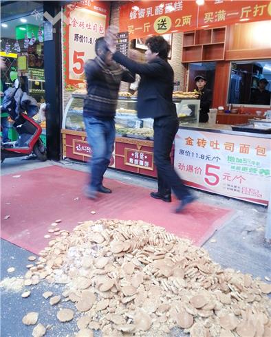 据现场了解,起因是租房纠纷。糕点店铺老板支付了押金,房主将房子钥匙交给了其中一名店员,几名店员已经将东西搬进了房主的房子里。但是糕点店老板却没有和房主签订租房合同,房主前面催了几次,开始糕点店铺老板还接电话并表示近期就签合同并支付房租,后来干脆连房主电话也不接了。房主多方打听到糕点店铺位置,并于1月7日来到糕点店铺讨要说法,并要店员把东西搬走、交出钥匙。但是店员没有认可房主的说法,导致肢体冲突,争执中摆放在店铺门口的十几斤桃酥被全部打翻在地。