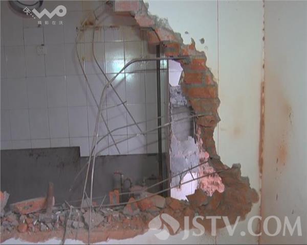 今天(1月7日)上午家住南京四平苑15栋的王先生反映一楼正在搞装修,把两道承重墙给砸了,住在楼上的居民十分担心。四所村派出所民警立即赶到现场查看情况,室内工人们正在施工,一侧墙体已经被砸开一个大窟窿,钢筋裸露,厨房烟道被敲坏,民警要求施工人员拿出相关单位审批的施工方案,由于施工人员拿不出来,民警要求立即停止施工,到住建局房屋鉴定后,方可施工。