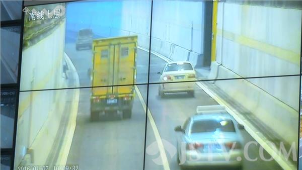 调取了这两天的监控视频发现,在1月4日的凌晨 四点左右,有一辆渣土车来到了扬子江隧道的北向南入口,从监控画面上可以明显的看出,这个渣土车的高度是明显高于限高杆的,但是这个司机为了强行通过,让他的同伴下车强行把这个限高杆抬高过车身,进入了隧道。 南京交警五大队民警介绍,因为这个隧道里面的地形比较复杂, 坡道比较多,急转弯也比较多,这些大型车辆进去以后,如果一旦发生了抛锚,就很难有清障的办法, 对交通的影响会比较大。