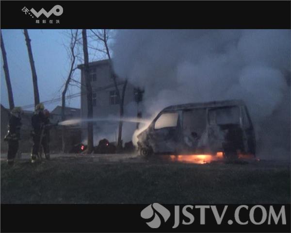 1月8日上午6时,盐城市滨海县正红镇漳沟中学北侧的道路上,一辆行驶中的面包车突然起火,火势很快将整个车辆引燃。司机发现险情及时报警求助,而闻讯赶来的村民主动加入到灭火队伍中。