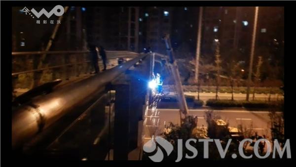 南京市鼓楼区城管局市容景观科工作人员告诉记者,早在去年的11月25号晚上10点多钟,他们就接到过举报。当时,他赶到现场后,立即用自己的手机记录下了工人焊接钢架的作业现场,因本人非执法人员,制止无效。现场立即联系局指挥中心值班员,通知宝塔桥街道执法中队查处,但已近夜间11时,中队已下班。第二天广告就已经挂好,动作很快。