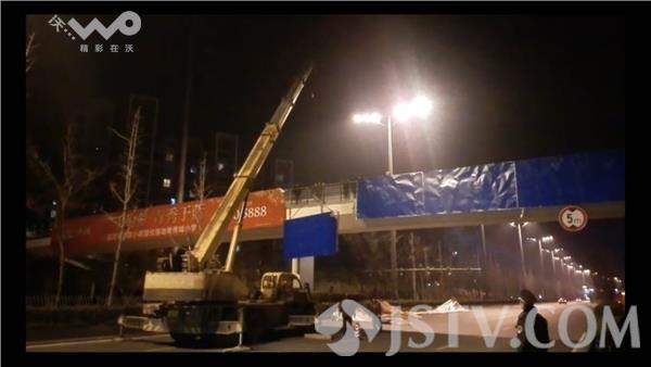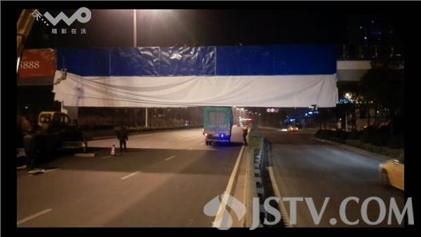 对此,南京市鼓楼区城管局市容景观科负责人说,他们也多次尝试通过施工人员联系发布这些广告的公司,但是始终没有回应。因此,昨天晚上10点以后,在避开了车流高峰期后,南京市鼓楼区城管局组织了机械设备和人员,对违规广告进行拆除。