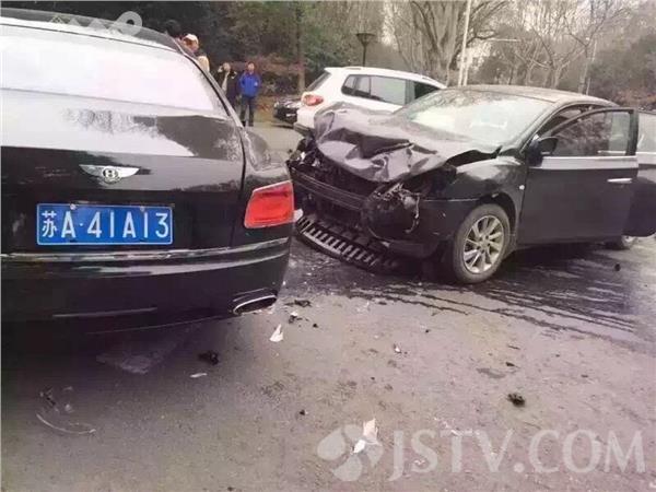 昨天(1月10日)下午,在南京玄武区紫金山庄一号门口附近,一辆东风日产轿车右转时撞上路边宾利车,致宾利车受损,气襄也被打开。据称,受损宾利车价值500万元以上,此次车损要超10万元。