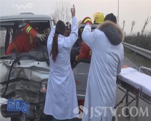 昨天(1月10日)上午7点左右,扬州高邮邮兴公路兴化路段,一辆小货车与一辆拖拉机追尾,事故导致货车司机被困,当地交警、消防、120等人员迅速赶到现场展开救援。