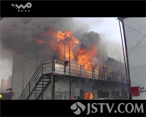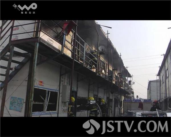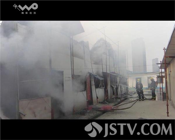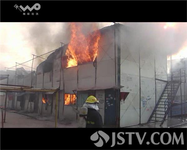 中队消防官兵到达现场后,发现该工地员工宿舍着火,火势处于猛烈燃烧阶段,迅速向四周蔓延,部分宿舍已倒塌,且宿舍由泡沫夹芯板搭建的。