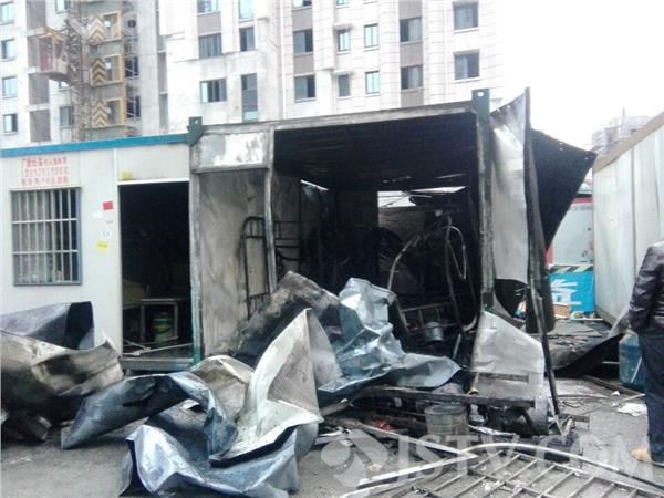 据一位工人介绍:他们刚回来,里面多件物品被烧,价值几千元,估计是电源起火。据附近居民介绍:当时在家看到冒烟,一开始以为垃圾起火,随后出来看,发现是工棚起火了,立即就呼救,随后附近小区物业工作人员闻讯参加灭火,到一位老太家里接消防水灭火,得到老人大力支持,家里被撒了许多水,老人一点怨言没有。当时一家快递公司老板报了警,随后消防也赶到将大火完全控制,幸亏扑救及时避免火烧连营的严重后果。