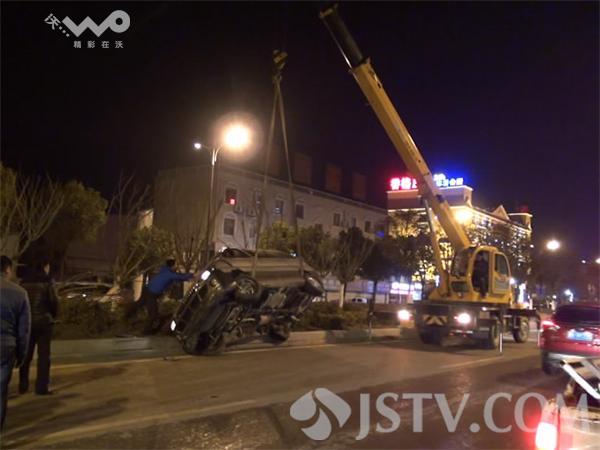 记者立即赶到事发现场时看到一辆商务车侧翻在路的南边,受伤的人被120送往医院治疗,在路中间花池内有二颗树连根拨起,倒在花池内,据驾驶员介绍他当时从东边过来,速度又不快看到路上有水,还特地减速刚走到路面有水的地方,车子就失控了,车子感觉就飘了起来,就撞到路中间的花池上然后就翻车了,当时车上4个人也出不来是好几个好心人将车撬开才爬了出来,随后就报警了,另外一位参与救援的市民介绍,他家就住附近在家里听到轰的一声,他就出来一看,就看到一辆车翻在路中间里面的人出不来,他也来帮忙撬车门救人了,随后记者赶往医院了解到,受伤的人还在医院治疗中,无生命危险,目前交警对这起事故原因还在调查之中。