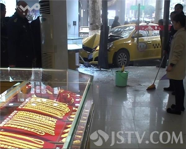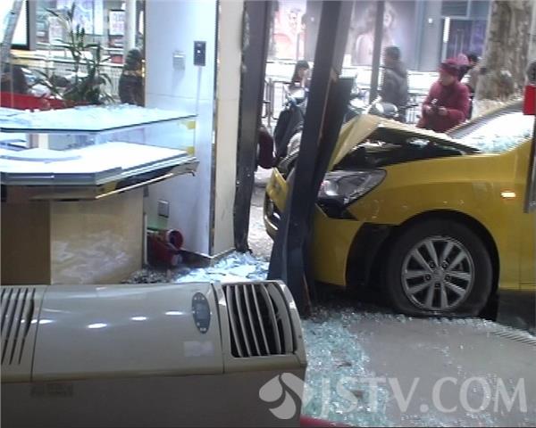 今天(1月13日)下午1点多钟,南京秦淮区太平南路与文昌巷路口,一辆出租车突然失控,冲向了一家金店。