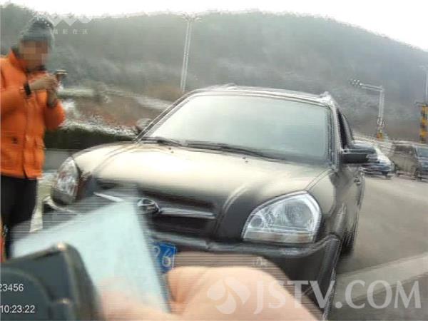 1月14日讯,昨天中午,徐州市泉山交警大队民警在云龙山隧道西口执勤时,发现一辆苏CXV82x牌照的黑色现代越野车未粘贴保险标志,民警按照规定指挥车辆靠边停车进行检查。就当民警对其进行检查时,男子突然向民警冲了过来试图对值勤民警动手,被其母亲当场拦下。