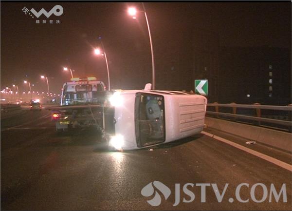 荔枝新闻记者在现场看到,面包车侧翻在马路中央,面包车玻璃已经摔碎。乘客表示的,当时车开好好的,整辆车突然就失去了控制。
