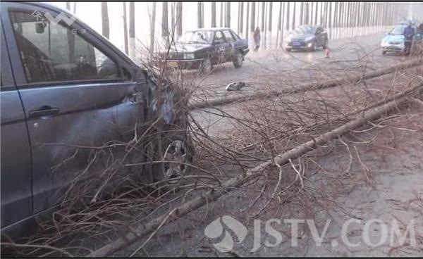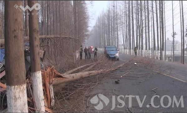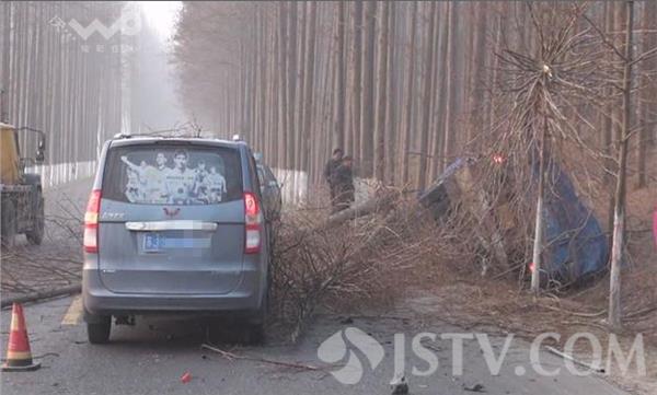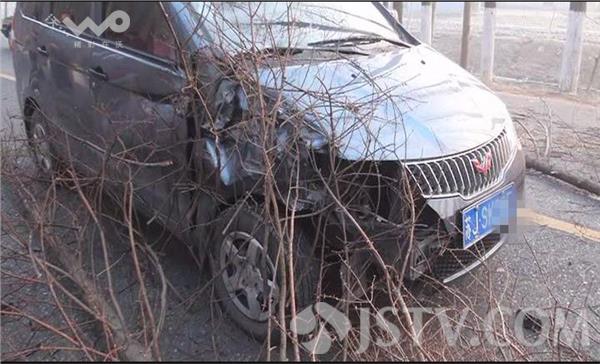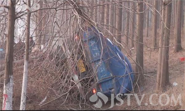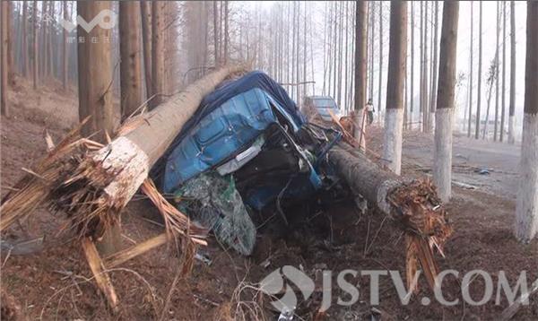 荔枝新闻记者赶到现场时,受伤货车驾驶员已被拽出车外,瘫坐在出租车的后排座位上,脸上和腿上都是鲜血。据出租车驾驶员徐师傅讲,他开车经过这里时,车祸刚刚发生,驾驶员被困在变形的驾驶室内,货车的油箱正在漏油,随时都有可能引发燃烧爆炸,见此情况,他与其他过路的村民一起,将驾驶员从变形的驾驶室里拽了出来,并抬上出租车,准备送到医院检查抢救。记者在现场看到,一辆满载货物的大货车侧翻在路边的护沟内,整个驾驶室已经严重变形,左前轮折断脱落,油箱漏油,空气中散发一股柴油的味道,一棵直径在五十公分左右的大树已经被撞断,整个树干压在驾驶室上面,旁边还有两棵直径在三、四十公分左右的大树倒在旁边,树干部分倒在公路的路面上,占据了整个路面的三分之二,导致该路段通行受阻,在由东向西的机动车道里,一辆小面包车头朝西停在那里,车前右角处被撞坏,一棵大树的树梢压在车头部位。货车驾驶员告诉记者,他在正常行驶到该路口时,小面包车突然从岔道上窜了上来,他在采取避让过程中,与小面包车车头部位发生了刮碰,随后就失控撞到路边大树并侧翻。货车驾驶员的这一说法,记者随后也从小面包车驾驶员处得到了证实。