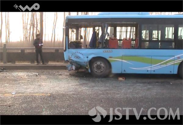 1月14日上午7:20分左右,淮安市清浦区二河大桥上发生一起交通事故,一辆变道超车的轿车与一辆直行公交车发生相撞,事故造成公交车上十多名乘客中的七人受伤送医。
