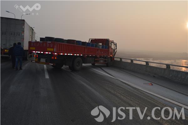 据句容市交警部门介绍,今天凌晨4点多,他们就接到了报警求助电话,由于道路结冰,赤山湖大桥附近有汽车和大桥护栏发生碰擦事故。交警也第一时间赶到现场进行救助。