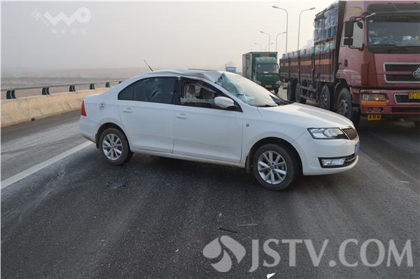 上午九点多,由于大雾天气,赤山湖大桥及周边道路的能见度不足50米,路面上随处可见车辆碰撞后留下的碎片,一处路面上还留有清晰的刹车痕迹。一辆SUV打着双跳灯,停在路边,等待救援。据车主王先生介绍,他的车由于道路结冰湿滑,与大桥护栏发生了碰擦,不能行驶。“路面滑,伤了20辆车了已经,太滑了早晨大概时速70公里的样子不到,60几公里,从句容往溧水方向开。”