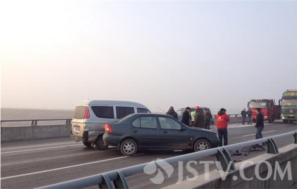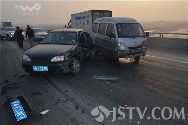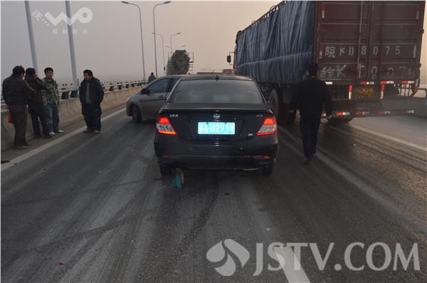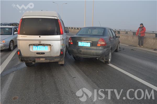 由于天气降温,道路结冰,今天上午(14日),句容市243省道赤山湖大桥周边连续发生多起交通事故,近20辆汽车受损,所幸没有人员伤亡。