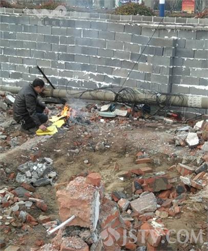 1月14日下午2点多,江苏如皋中专学校(原职教)对面一拆迁工地有人被砸身亡。荔枝新闻通讯员赶到现场,发现周围围满了人群,家属正在事发地烧纸钱。