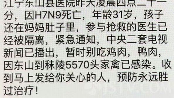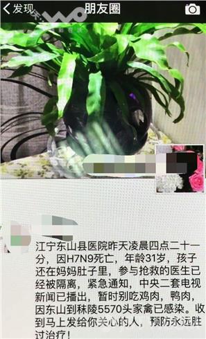 昨天,有南京市民在微信朋友圈里看到这样一条分享,说江宁东山县医院前天有一名孕妇因感染H7N9死亡。警方经过核实确认,这是谣言。今天南京警方给出了回应。