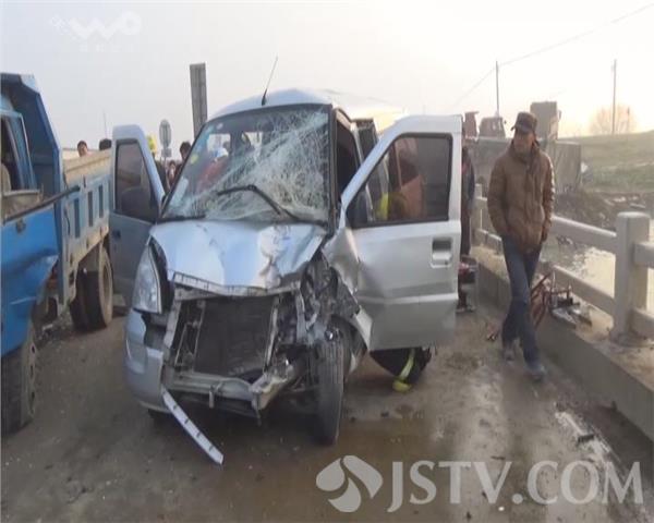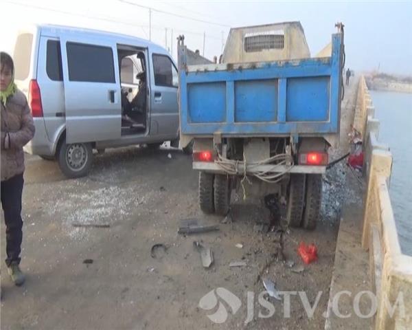 1月14日上午8点左右,扬州高邮市湖西漫水公路毛港桥上,一辆面包车行驶中突然失控,拐到旁边车道,与对面一辆货车相撞,面包车旋转180度,驾驶室变形,司机受伤被卡。当地公安、消防、120急救部门接警,迅速赶往现场救援。