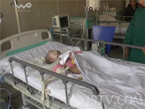 1月14日下午,荔枝新闻记者来到徐州市仁慈医院,在医院的病房内,记者见到了烧伤的女婴,孩子正躲在重症监护室内,孩子的母亲和医护人员一直陪在其身边。据了解,孩子被送到医院后,医护人员迅速做了抢救。