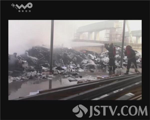在火灾事故现场,只见起火的堆垛正在猛烈燃烧,并形成了猛烈的火焰区域,为防止火势蔓延,现场的消防队员随即出两支水枪对火势进行控制,并在铲车的助力下,对堆垛进行清理,防止余火复燃。最终,经过近1个小时的处置,火势才基本得到有效控制,但是起火的堆垛则烧毁一空。