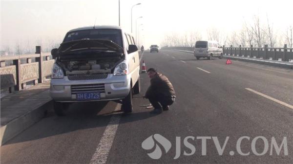 而在二河大桥这里有一辆面包车也因为路面结冰打滑失控旋转180度撞上路牙,没想到面包车刚撞过后面驶来的一辆面包车也同样因为路面打滑撞上了路牙爆胎,现场司机正在跟换备胎,回想起当时的情况,两辆面包车司机仍心有余悸,据司机介绍,大桥东西两端路面没有结冰,路面结冰的路段只在桥面上结冰,行驶中突然打滑失控了还好车速不快,否则后果不堪设想。”