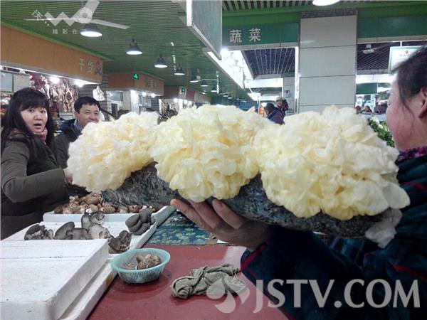 据菜贩介绍,新鲜的活银耳放在家里也是不错的摆设,它们长在一个黑色菌棒上,好像从土壤里开出一朵花来,活银耳吃的时候剪下来一些,剩下的还可以让其继续生长。据悉,养银耳一方面要保证湿度,另一方面也要注意温度要在22-25℃之间。香菇、银耳等食用菌属大型真菌类必须要在富含木质素和纤维素的生长基质上发育菌丝体以后,才能生长出供食用的菌菇等,而非直接生长于泥土中。