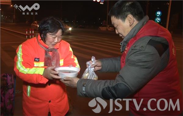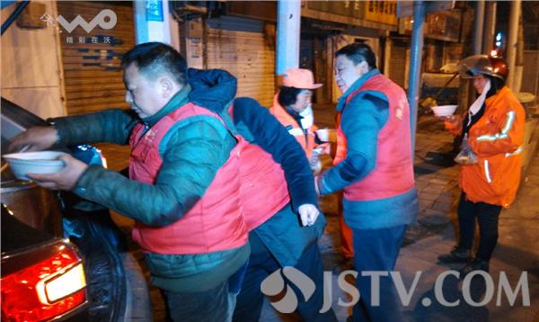 为了在腊八节让每一位清晨街头打扫保洁的环卫工人们都能喝上一碗热气腾腾的腊八粥,1月17日凌晨4:30分,淮安市经济开发区阳光志愿者协会8名志愿者冒着零下严寒在淮安市区各个主干道上为路面保洁的环卫工送上一碗腊八粥,热气腾腾的一碗腊八粥让环卫师傅们顿感暖意融融。