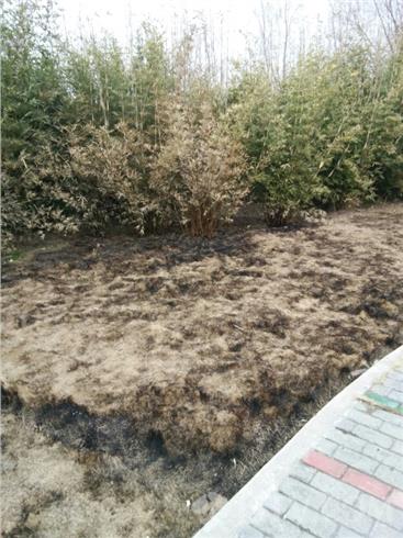 据了解,最近安丰绿化办正组织对公园树木花草进行修剪,经过修装后的树木豁然开朗,花草怡人。可是在北侧竹林边却出现了大量焦斑,原来是竹林下面的草坪被烧得焦枯一片,让人看了甚是怜惜,最近进入寒冬树木枯黄,败枝落叶到处飘零,稍不注意乱扔的火种就会引发大火,此草坪就是乱扔烟头所致,还希望广大居民爱护公园设施,爱护草坪,不要在公共场所抽烟,杜绝各种火灾隐患的发生!