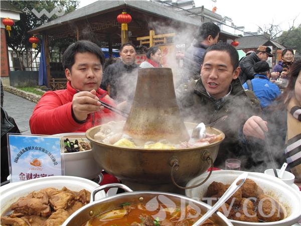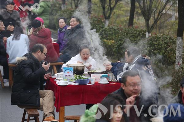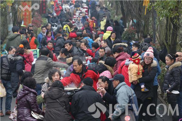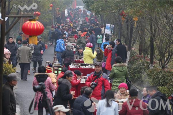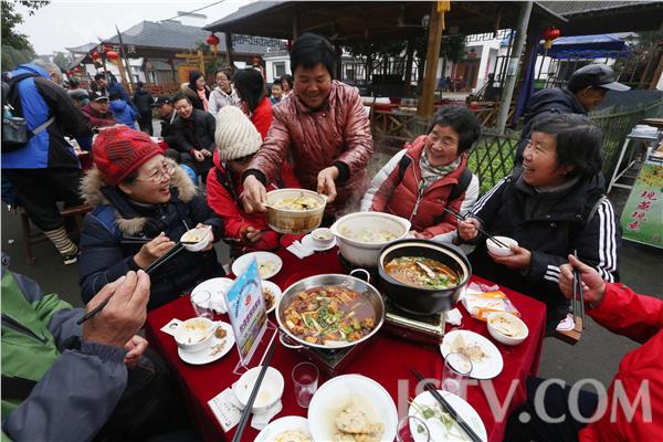 1月17日,不少市民在南京市高淳大山村吃起了“长街宴”。当日,南京市高淳大山村举办“长街宴”。市民和游人在大山村从村头到村尾摆出的56桌“长街宴”上品尝地道的红烧肉、农家全家福、清蒸老母鸡、红烧羊肉锅、时令蔬菜等年菜。据悉,席开五十六桌,寓意56个民族团结在一起。